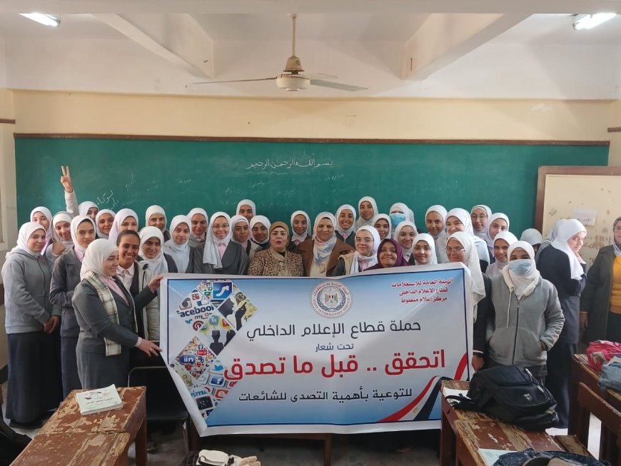 بقيادة د/ ضياء رشوان وبتوجيهات دكتور احمد يحيي رئيس قطاع الإعلام الداخلي نظم مركز إعلام منفلوط لقاء تثقيفي بالتعاون مع مديرية الصحة أليوم الخميس الموافق٢٠٢٤/١٢/٢٦ بعنوان الشائعات ومخاطرها علي الأمن القومي والتحديات الراهنة بمدرسة والتمريض بمنفلوط بحضور ا/ نجوي يوسف محرر عسكري بموقع الفيتو ونائب رئيس تحرير جريدة اليوم وا/ هالة جمال عبد النبي مديرة المدرسة